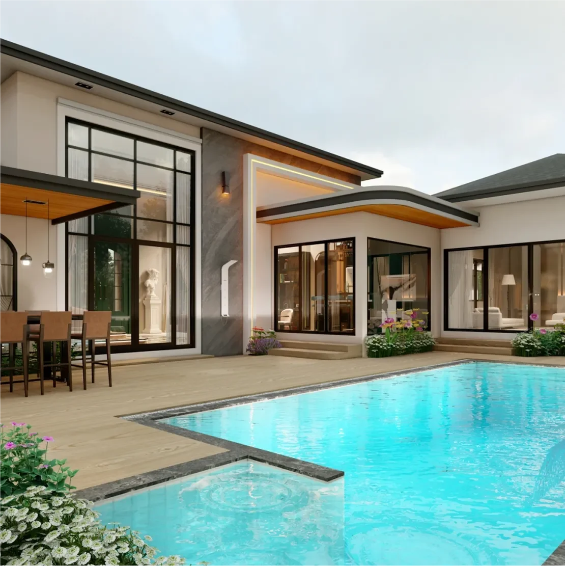 BEST ONE Focus on sustainable design, from the beginning of designing a home to support a quality life. The luxurious design perfectly combines beauty and utility. The design creates a relaxing atmosphere in the house, creating a space of true relaxation and physical and mental balance for the residents.