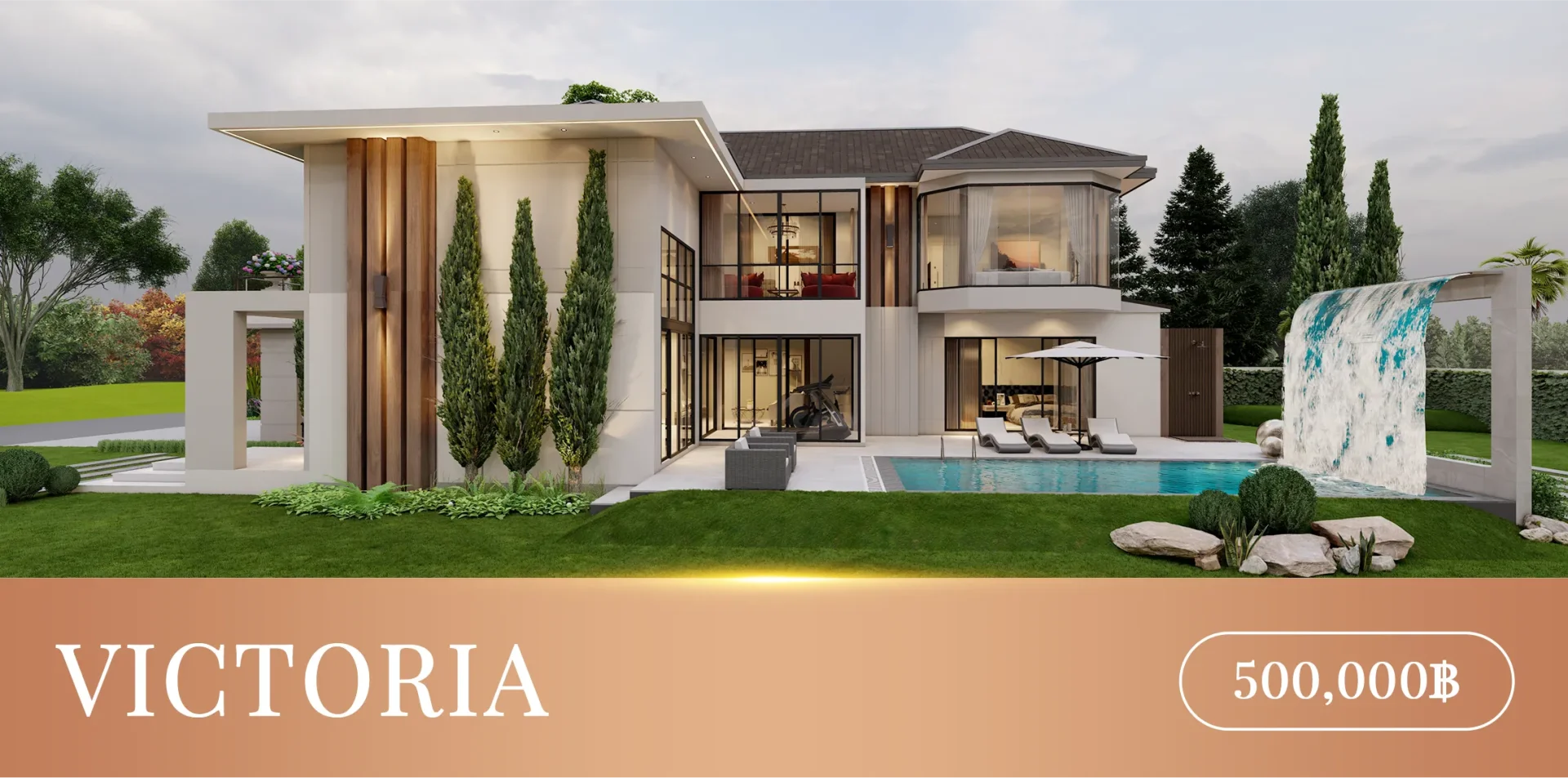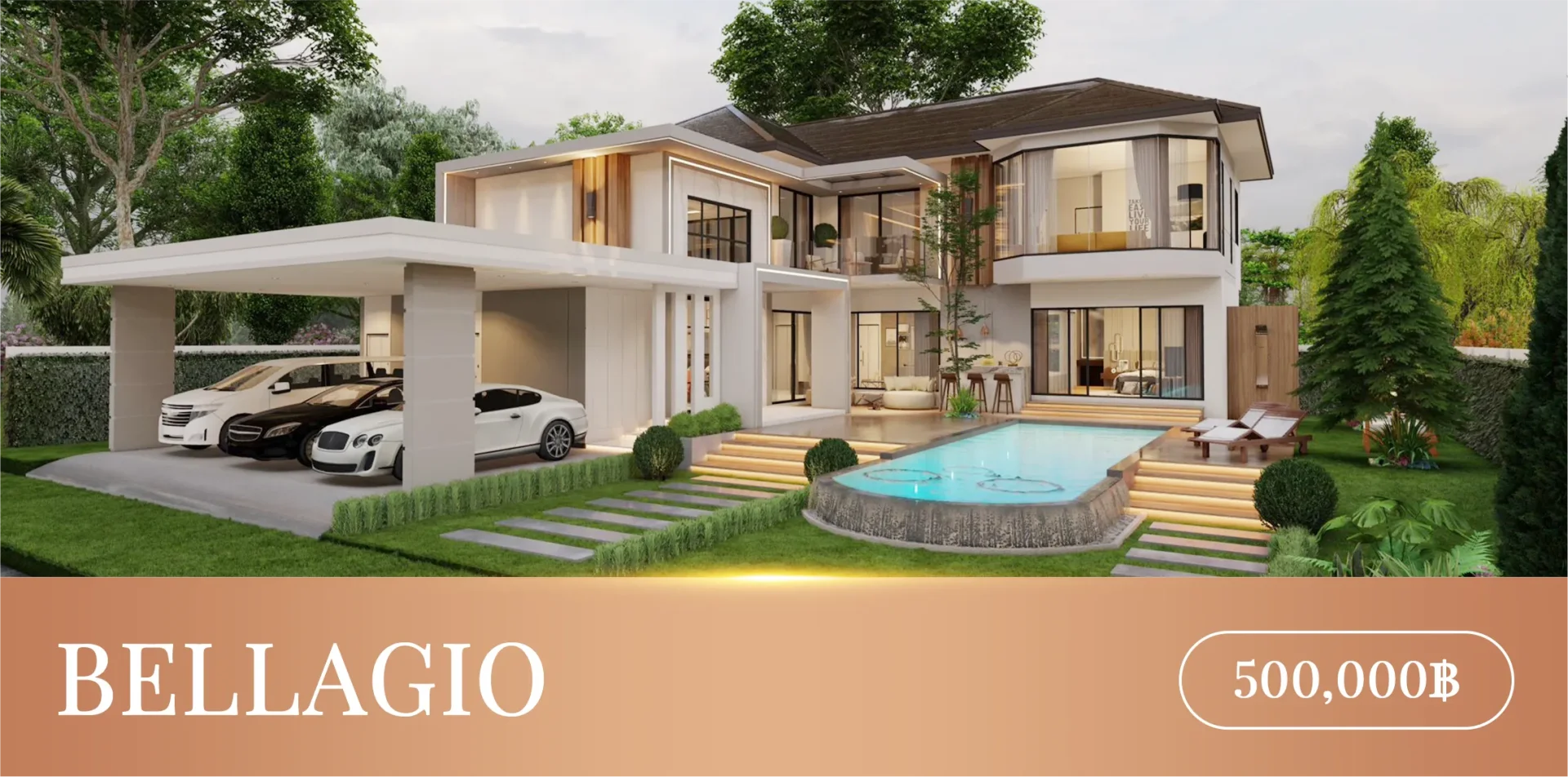*Built-in model add 100,000฿ including 3D images of living room, European kitchen, downstairs bedrooms, masterbedroom, dressing room, 2 small bedrooms