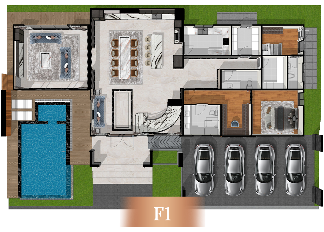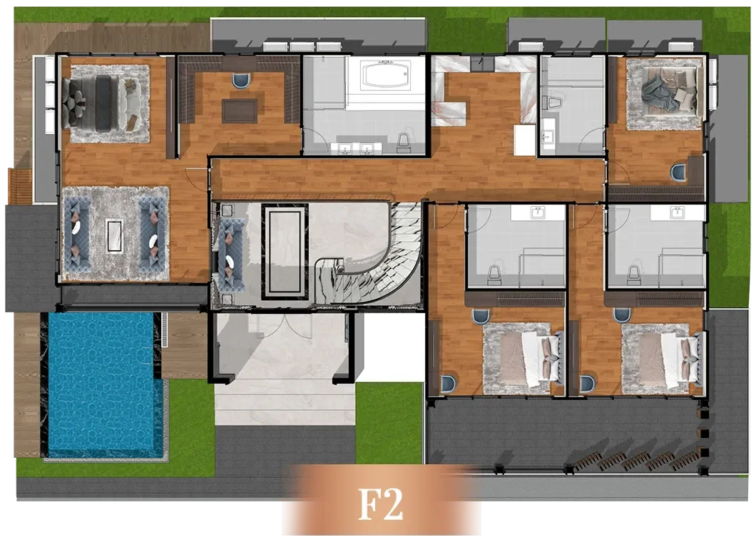 swimming Pool size 4.5x9 meters with Jacuzzi included.